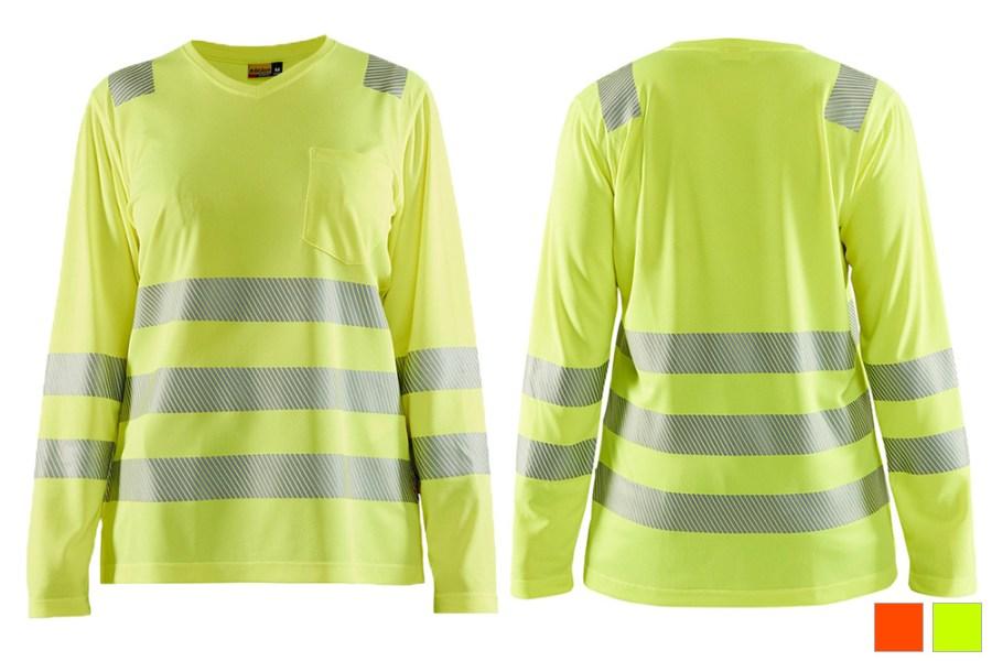 Blaklader's Women's Hi-Vis Long Sleeve T-Shirt a versatile and high-performance addition to the modern working woman's wardrobe. Crafted with precision, this shirt is made from 100% polyester birds-eye knit, weighing just 5 oz. and offering a perfect combination of lightweight comfort and durability. Engineered with wicking technology, it ensures moisture is efficiently drawn away from the skin, keeping wearers dry and comfortable throughout the day. The anti-odor treatment guarantees freshness, making it an ideal choice for active lifestyles.