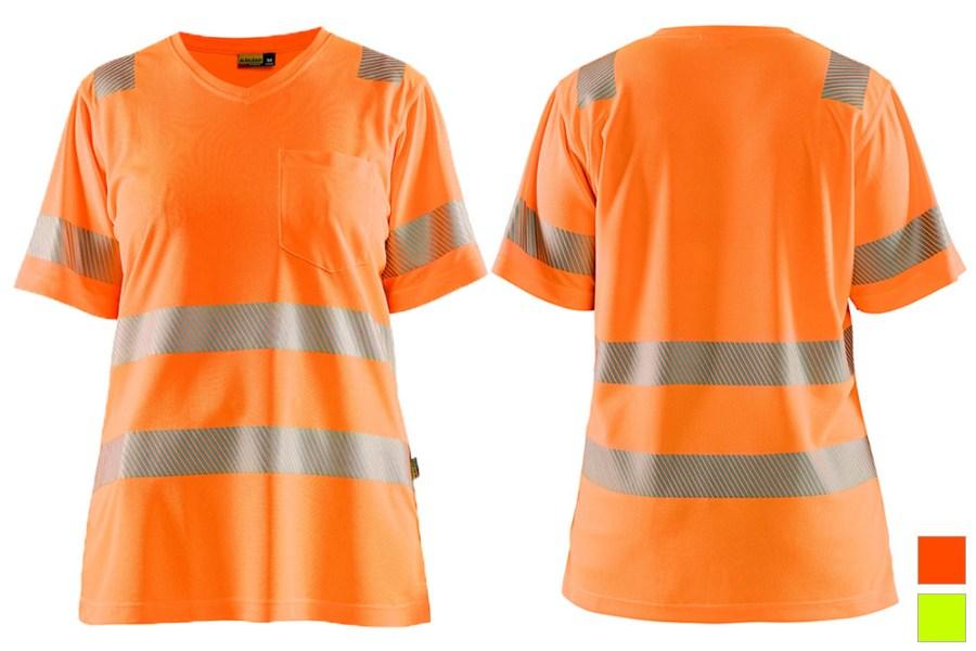This short sleeve t-shirt goes beyond the ordinary with its UV-protection feature, shielding wearers from the sun's rays during outdoor activities. The standout design element is the wide reflective tape on the body, sleeves, and shoulders, enhancing visibility in low-light conditions. Available in hi-vis orange and yellow, this t-shirt is not only a testament to safety but also a stylish addition to any wardrobe. This shirt effortlessly combines functionality and fashion for the woman who seeks quality and performance in every aspect of her work attire.