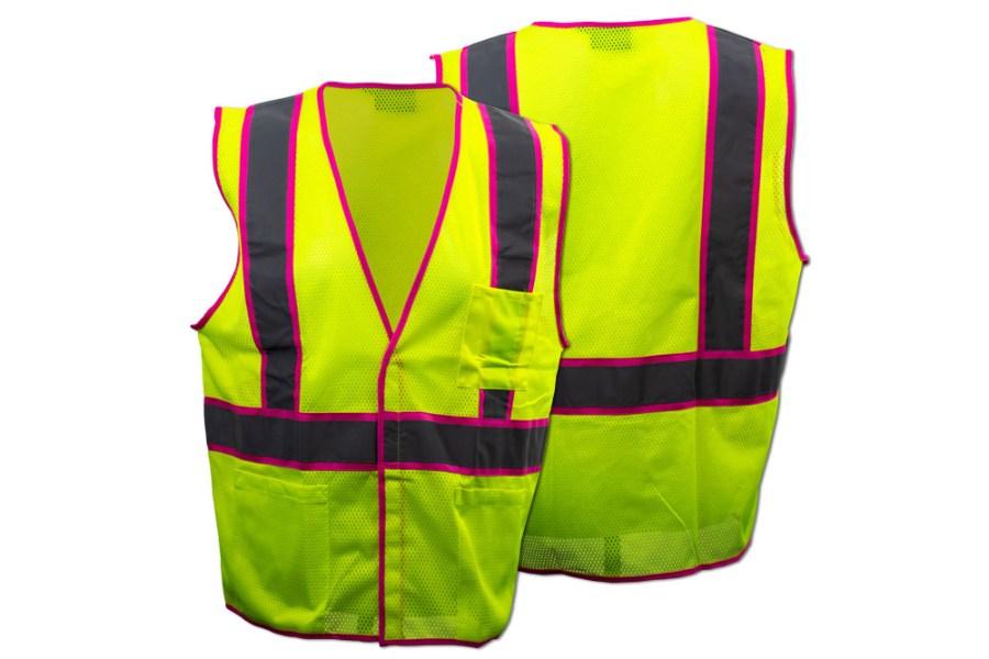 Don't get lost in the crowd with this two-tone safety vest highlighted with pink trim. Unlike most pink safety vests, this vest meets ANSI class 2 requirements. With its unisex design, its sizing is similar to other ANSI class 2 safety vests.