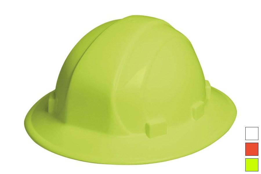 These full brim hard hats from Delta Plus are molded from high density polyethylene for maximum protection. Provides protection from sun and rain. Made in USA and meets ANSI Z89.1 Type 1, Class C, E & G requirements. The Slide-Lock's have the easy "Quick-Slide" sizing that adjusts suspension from head sizes 6.5" - 8". The Mega Ratchet is a secure-fit ratchet that features an easy turn knob. Adjusts to over 40 different head sizes, 6.5" - 8".