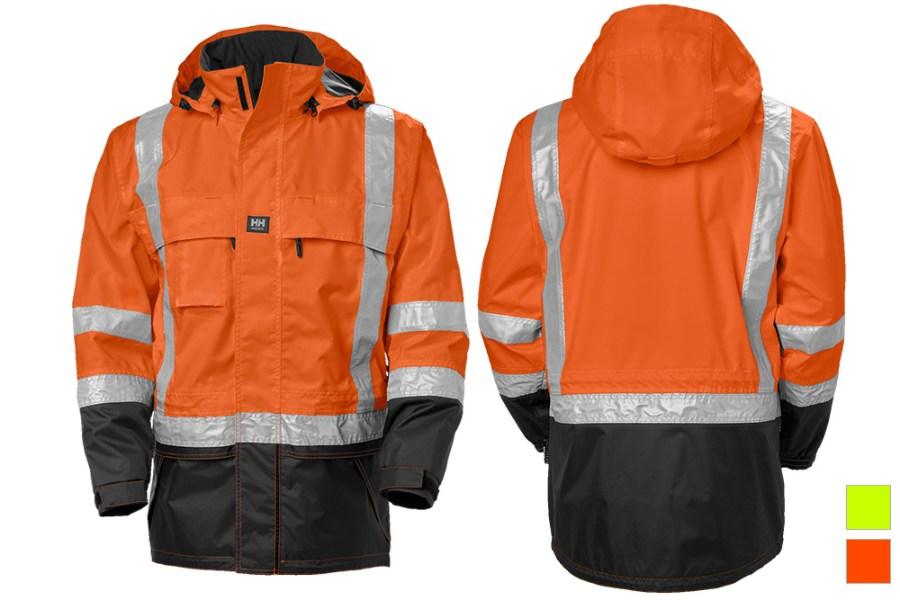 The Hi-Vis Potsdam Jacket by Helly Hansen is great for professionals working in challenging conditions. Crafted with Helly Tech® Protection Fabric, it boasts waterproof, windproof and breathable properties and meets ANSI/SEA 107-2015 Type R Class 3 standards. Its fully taped construction ensures durability and resilience against the elements, while the high-visibility yellow or orange coloring, coupled with reflective panels, guarantees visibility in low-light environments.