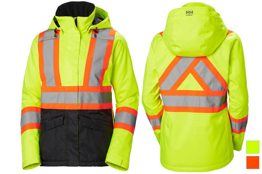 The Women's Alta Winter Hi-Vis Jacket by Helly Hansen is designed to meet the demands of cold and low-light work environments. Crafted with Helly Tech Performance fabric and featuring fully seam-sealed construction, this jacket is waterproof and breathable, ensuring protection and comfort in a variety of weather conditions. Certified to ANSI/ISEA 107-2015 standards for high visibility, it enhances wearer safety on the job site.