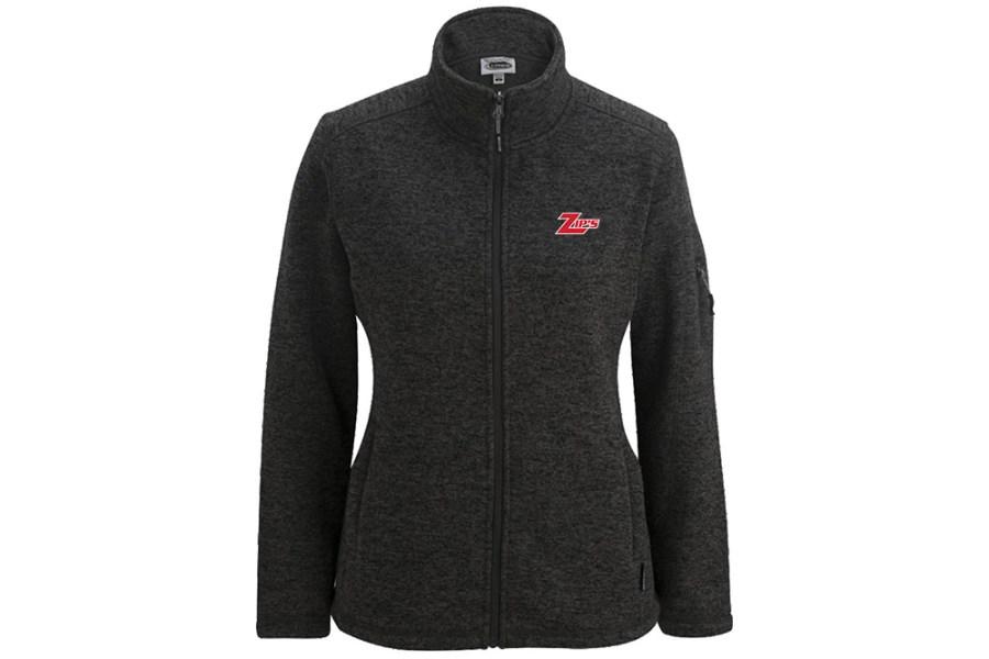 This ladies' sweater knit fleece jacket is warm, comfortable and comes in the color charcoal.
